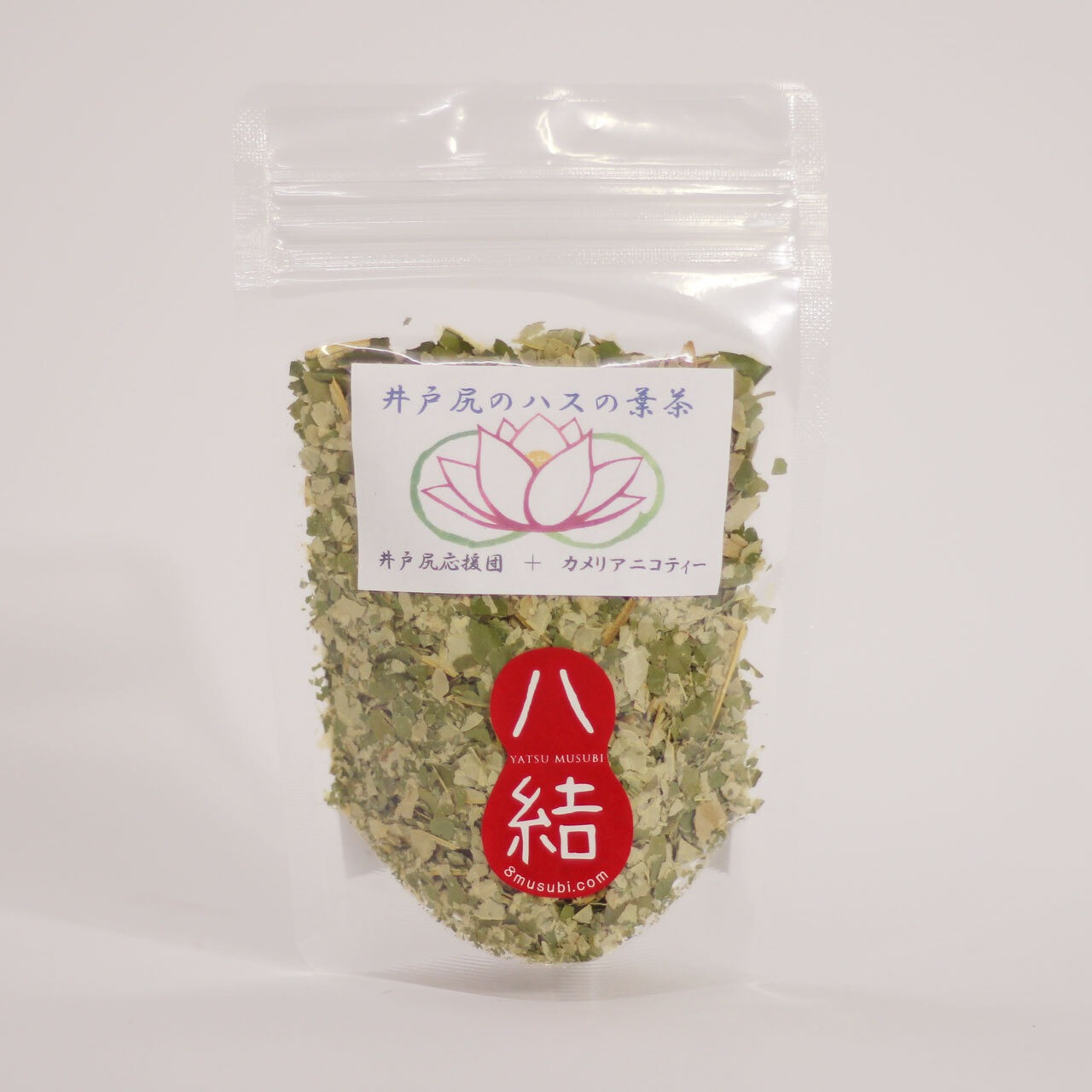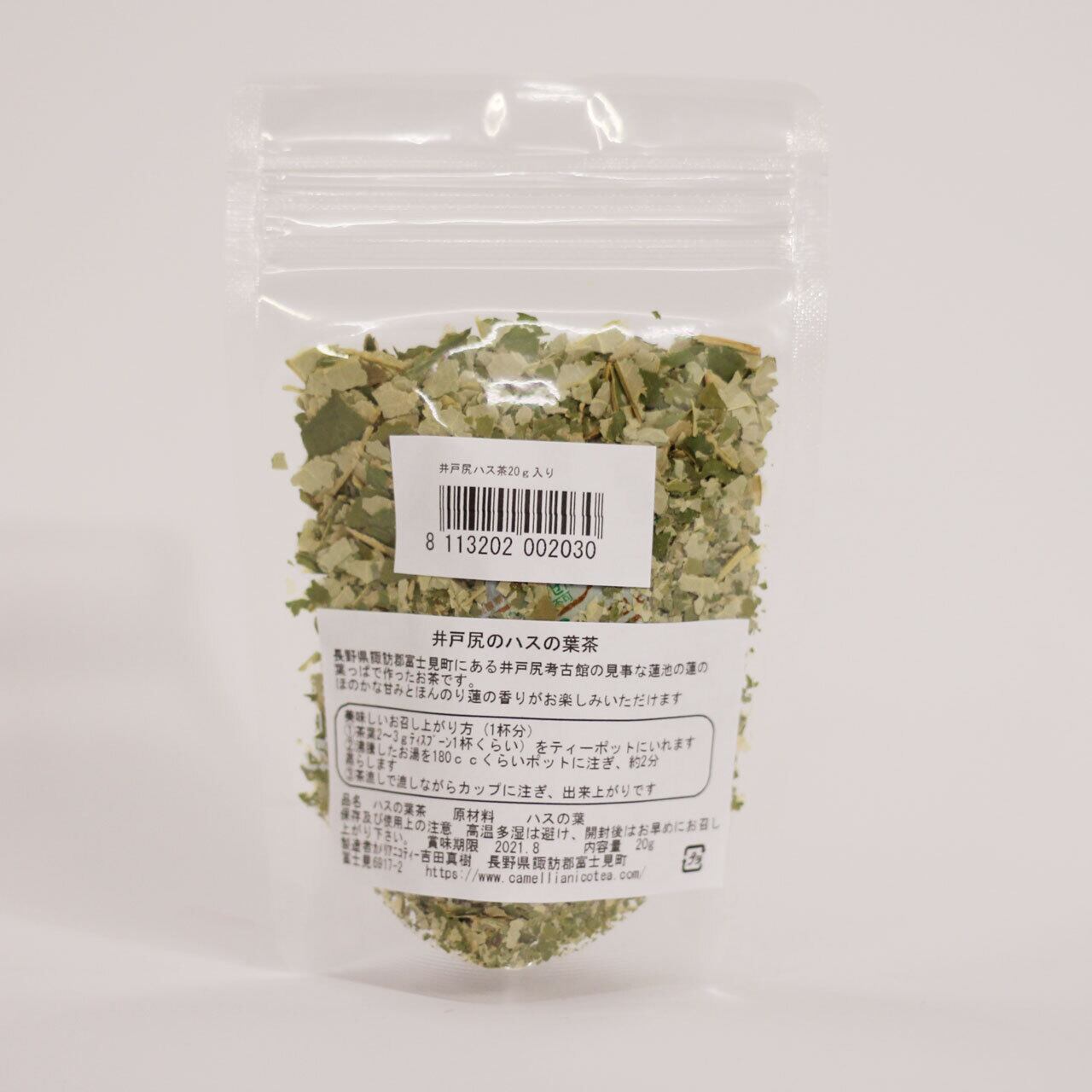 縄文の里富士見の井戸尻考古館に咲く見事なハスの花の葉っぱを乾燥して作ったお茶。綺麗な若草色のお茶で、ノンカフェイン、ほんのり甘い香りで癖がなく飲みやすい。